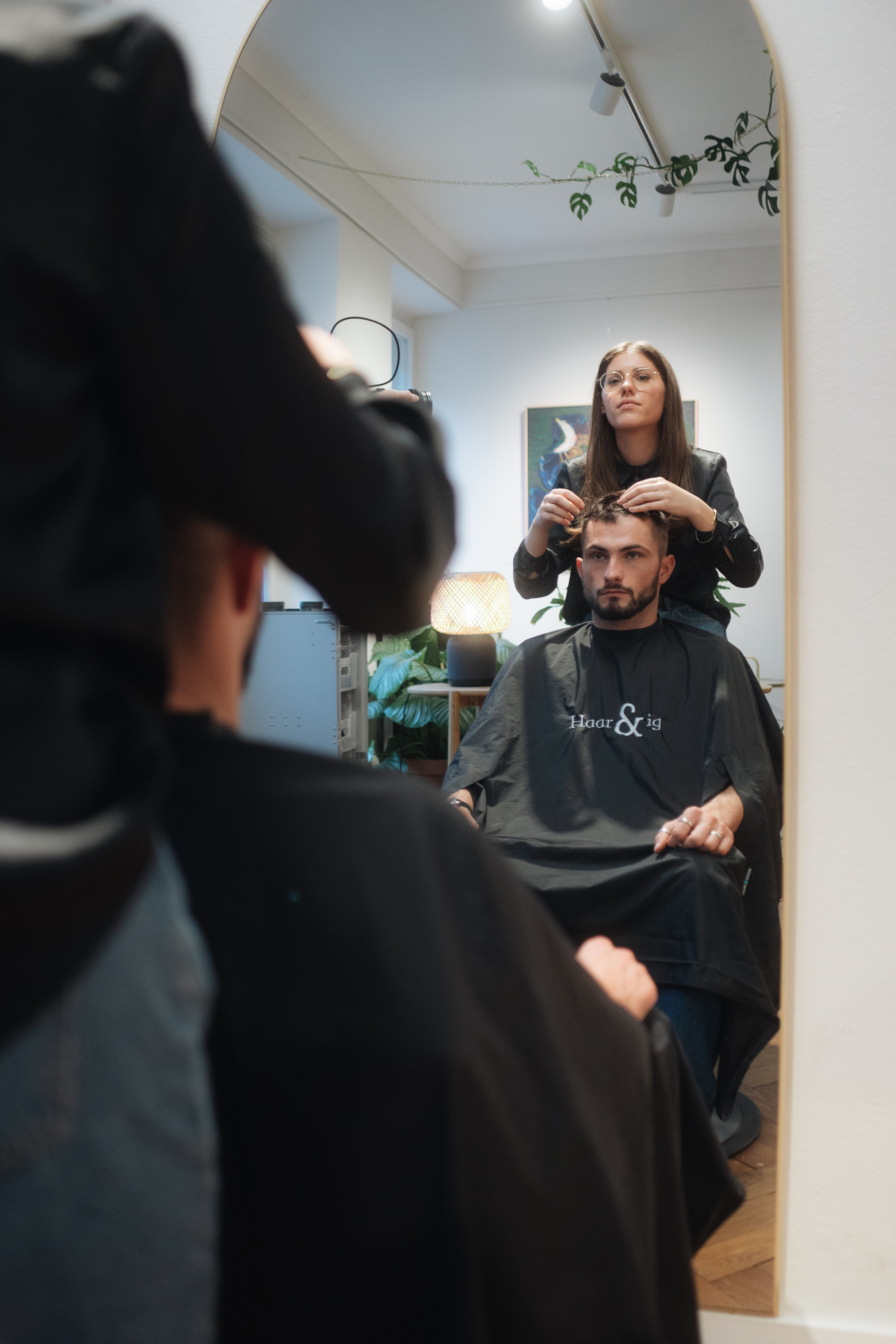 - Moderne Schnitttechniken: Ich nehme regelmäßig an Schulungen teil, um die neuesten Haarschneidetechniken zu erlernen und zu perfektionieren. So kann ich dir immer die angesagtesten Frisuren und Styles bieten.