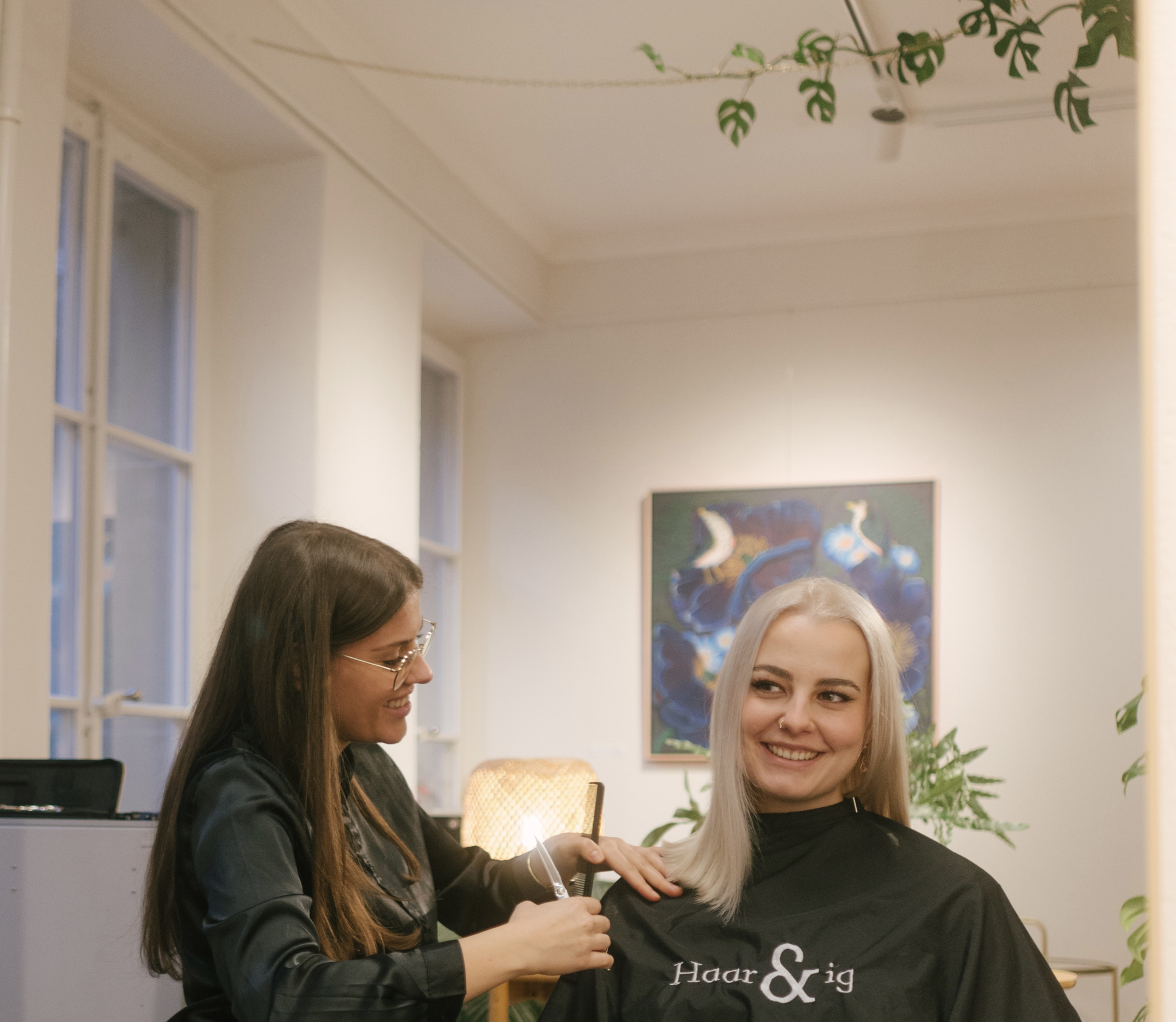 - Pflege und Styling: Ich bilde mich ständig weiter, um dir die besten Pflegeprodukte und Stylingtipps empfehlen zu können. Dein Haar verdient nur das Beste, und ich weiss genau, wie wir es in Topform bringen.